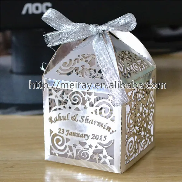 Wholesale Wedding Favours Gifts Laser Cut Wedding Favor Boxes Silver With Custom Made Names And Date Silver Ribbon Gift Boxes Bags Aliexpress